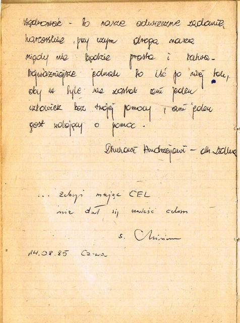 Wpis pamiątkowy od dh. Lidki Myślińskiej