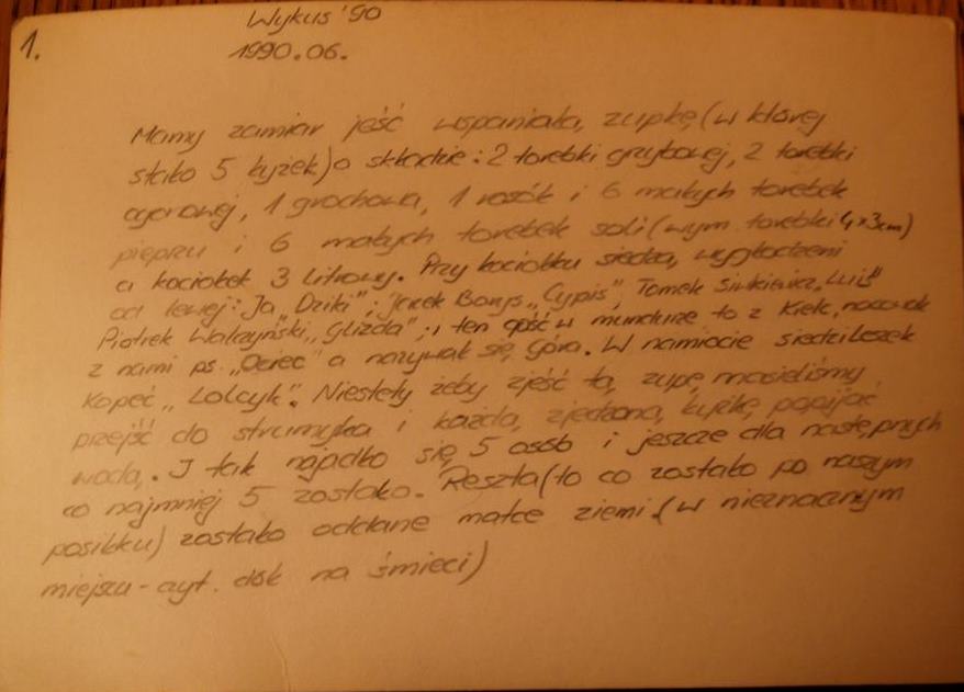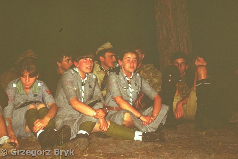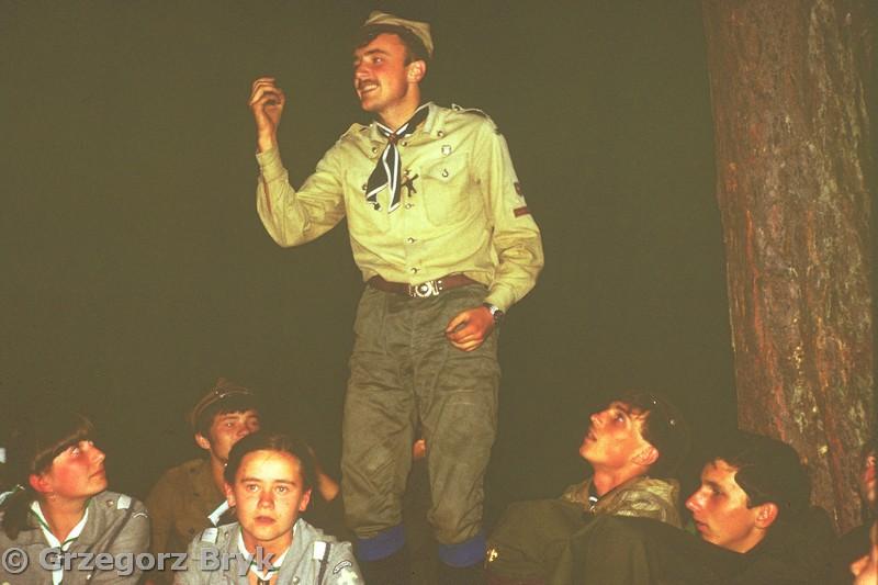 Zlot Bratnich Drużyn na Wykusie. Oprócz „Czarnej Jedynki” obecne są  drużyny środowiska Kieleckiego związane z KIHAM . W nocy odprawa instruktorka której przewodzi „Bitum” Andrzej Wysocki ze ”Szczepu Zielona 3” z Krakowa. Mówi między innymi o roli instruktora harcerskiego w komunistycznym ZHP. Instruktor ma być sitem i tarcza. Filtrować informacje jak sito i chronić podopiecznych przed zgubnymi wpływami komunizmu. W odprawie instruktorskiej uczestniczą między innymi: wyw. Grzegorz Katerżawa, wyw. Krzysztof Osóbka, mł. Dariusz Lenard.