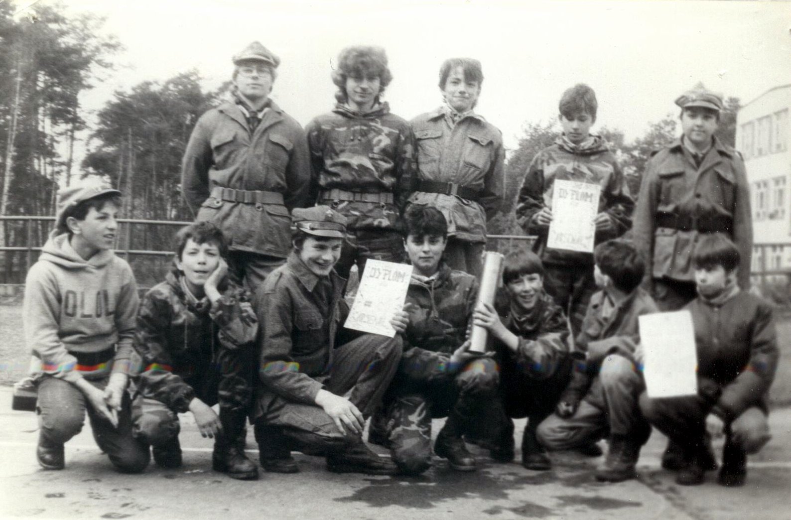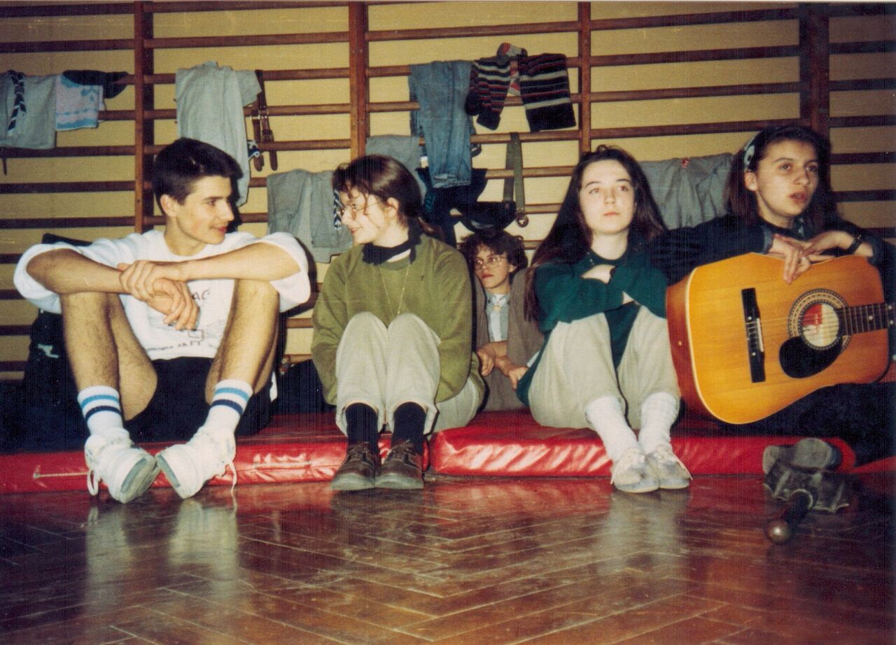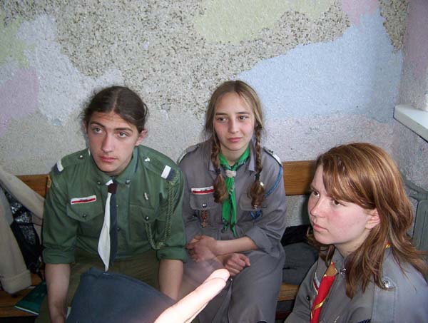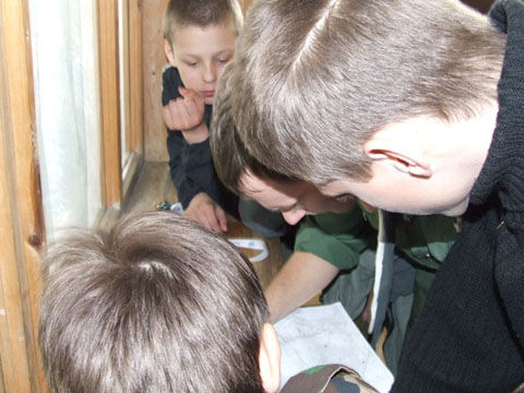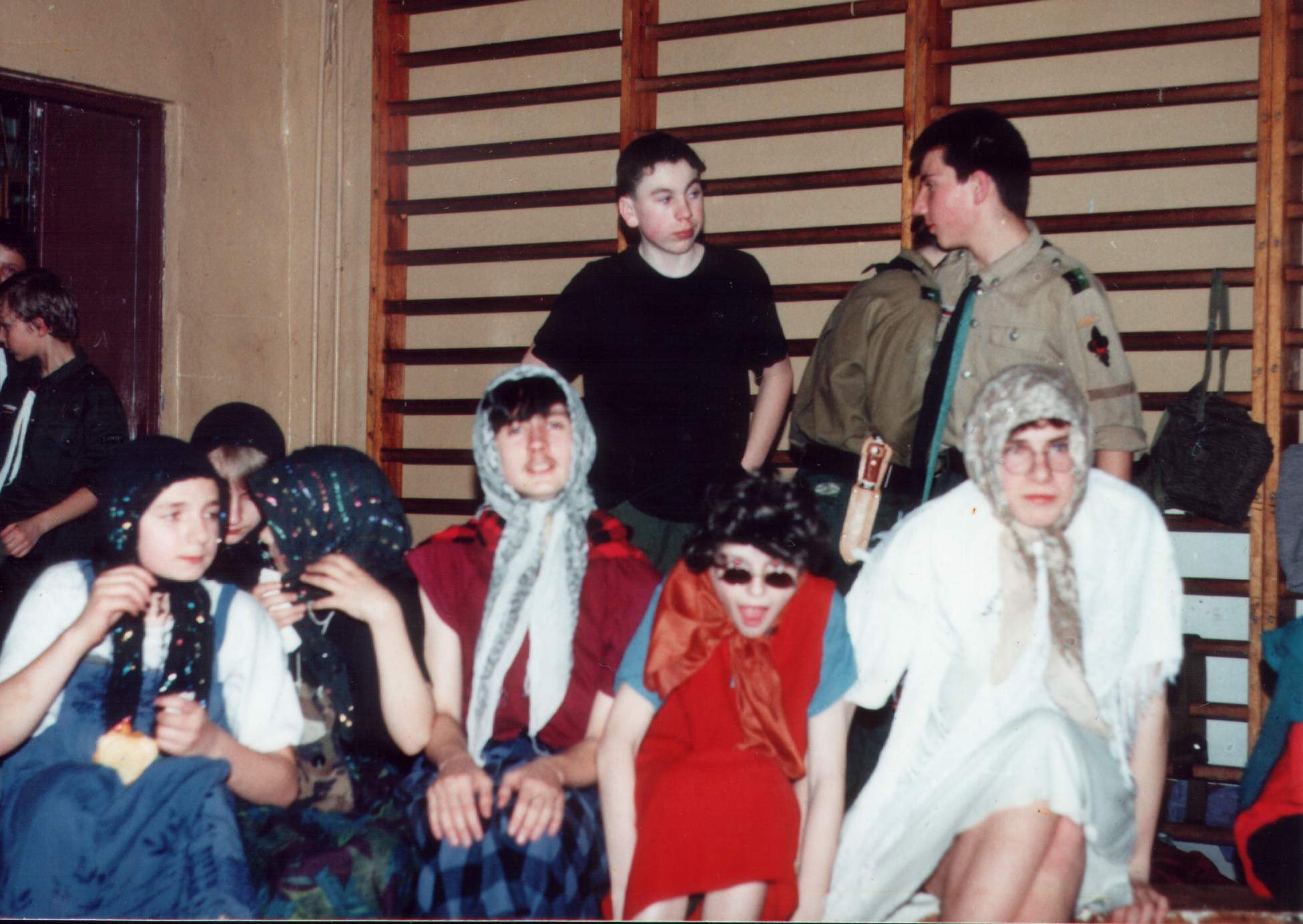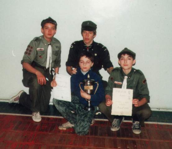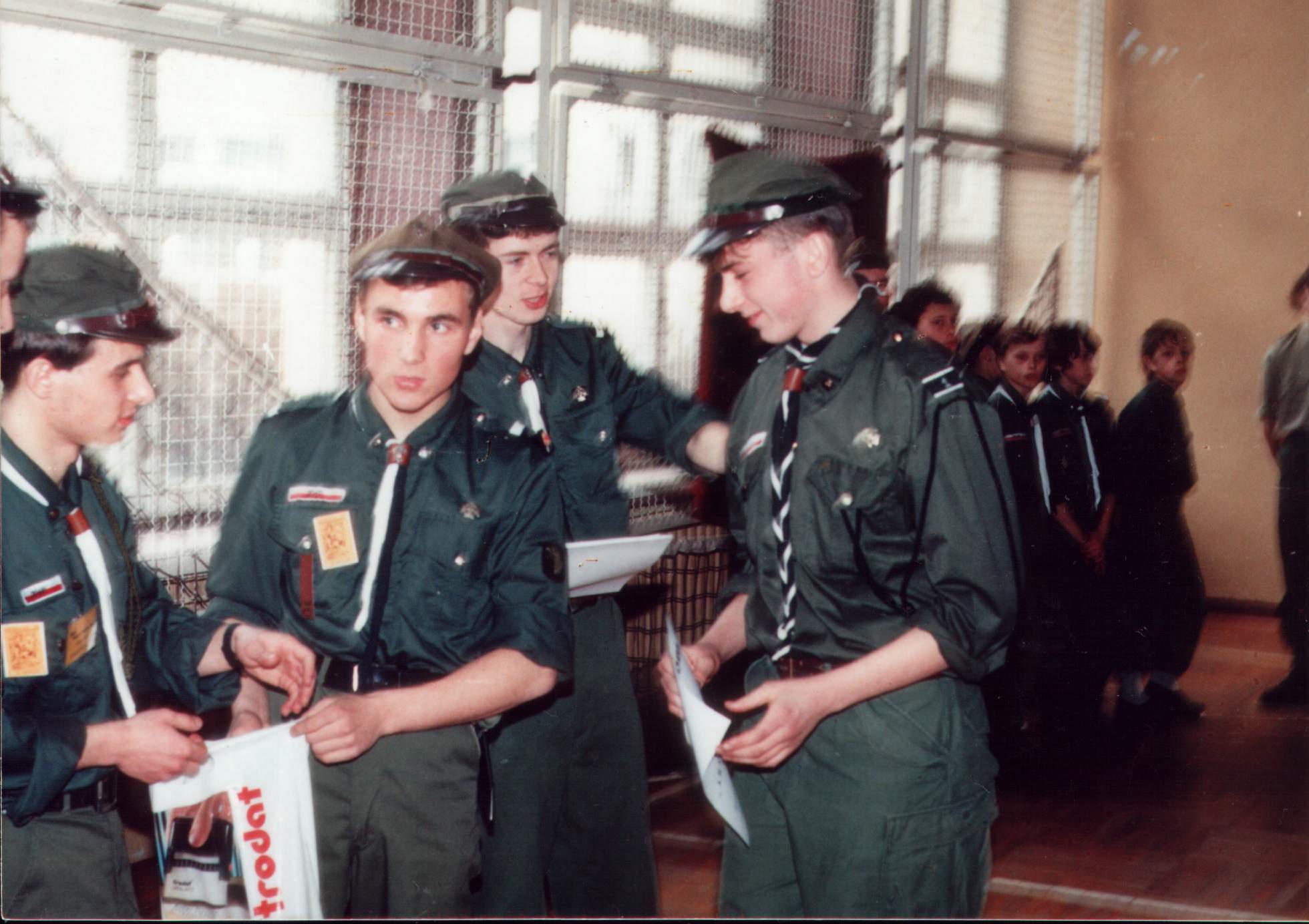 1992.03.27-29 - Rajd Arsenał - Baza w SP 2 na Borze, zastęp młodszoharcerski z Czarnej Jedynki.