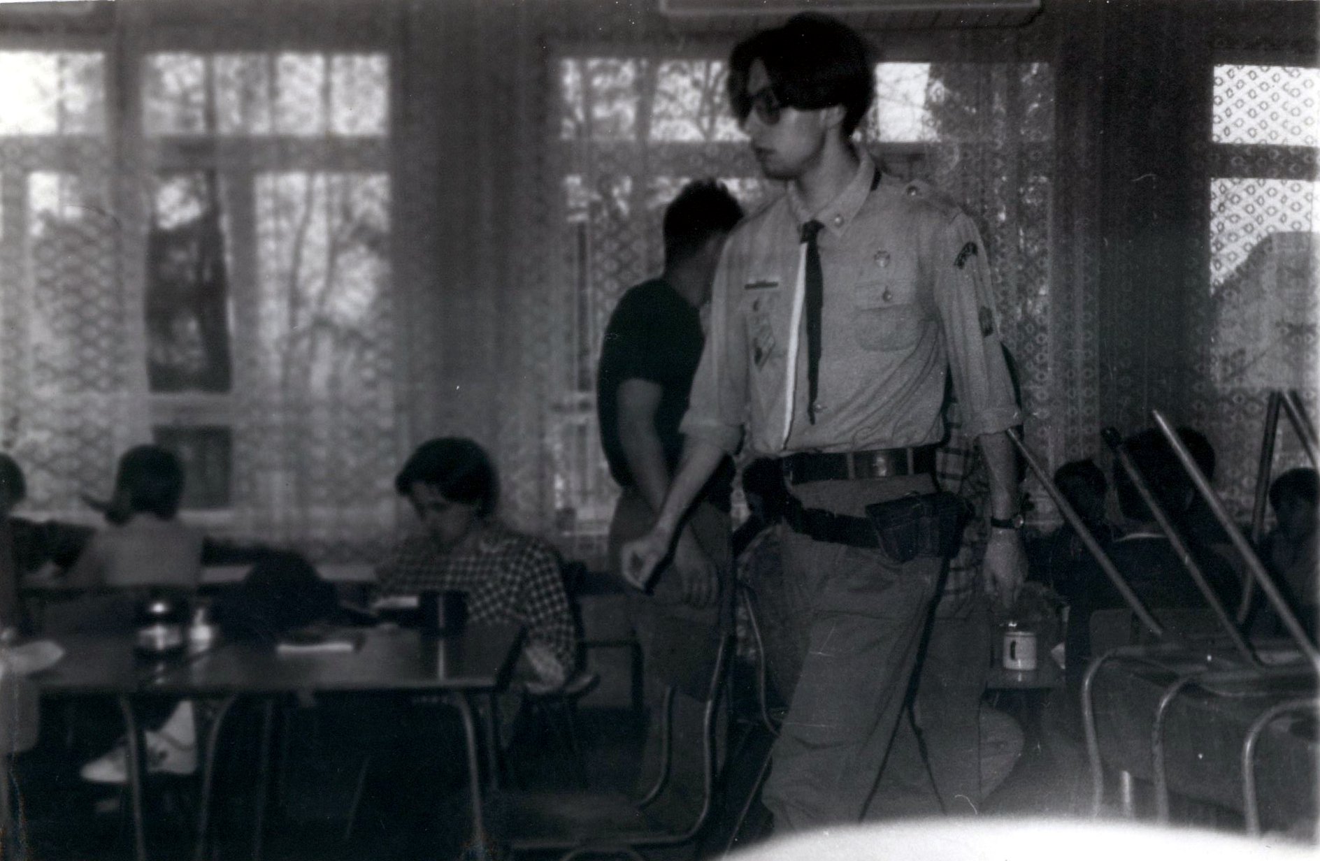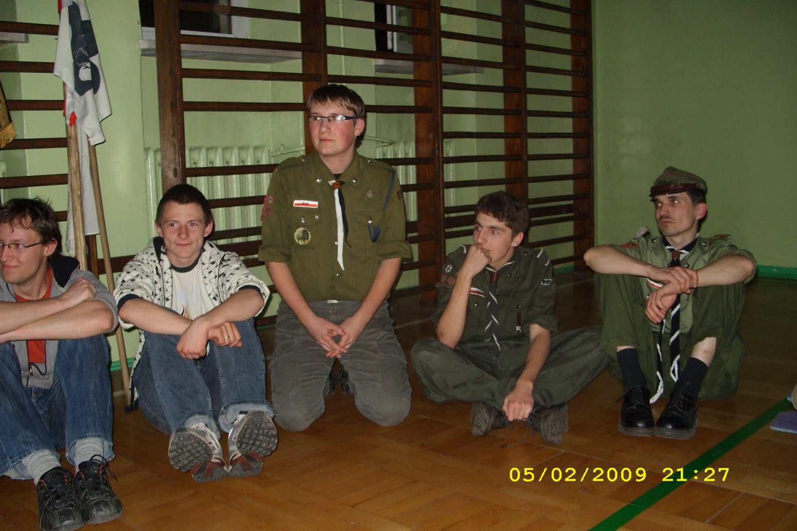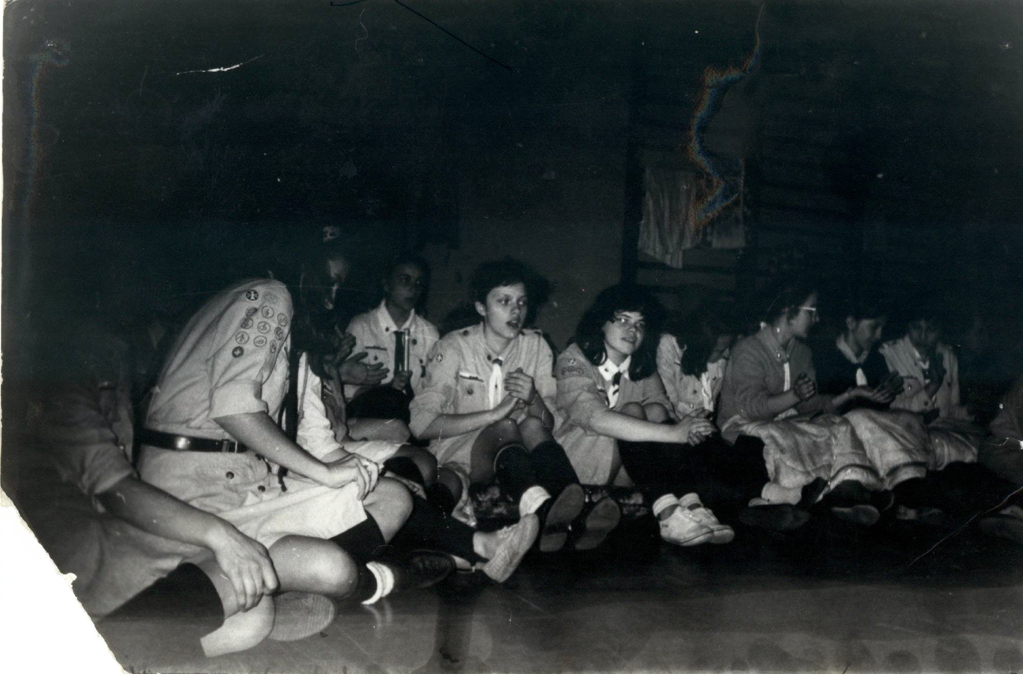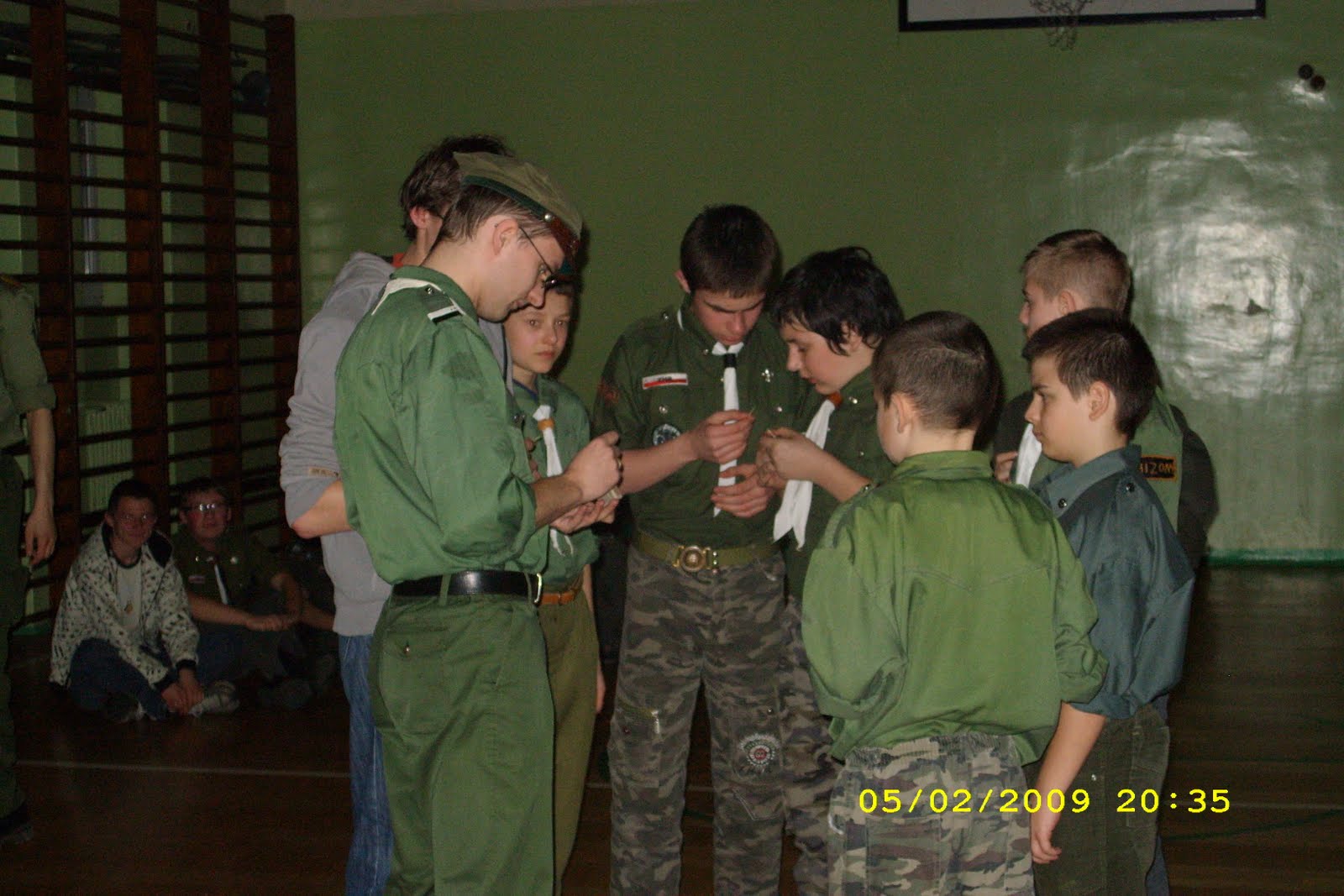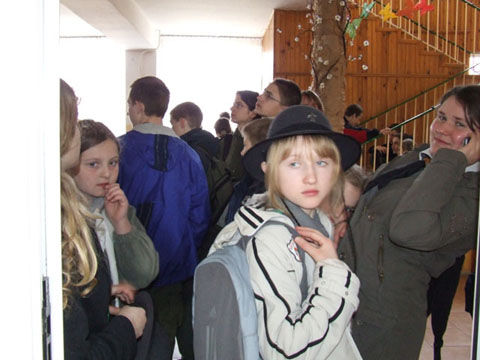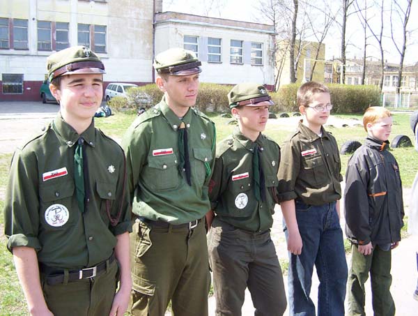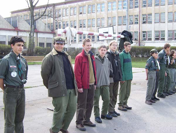 1992.03.27-29 - Rajd Arsenał - Baza w SP 2 na Borze, zastęp młodszoharcerski z Czarnej Jedynki.