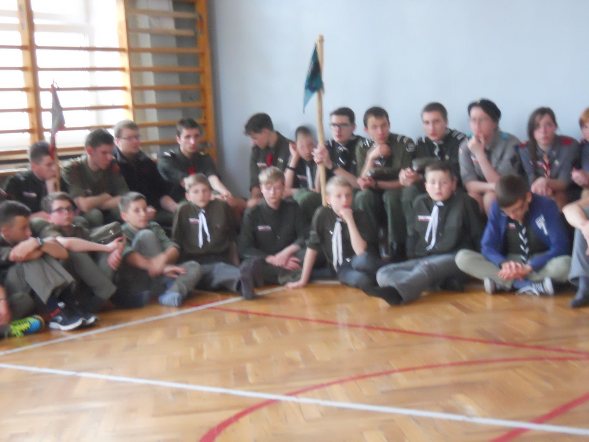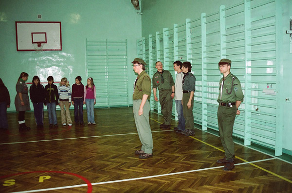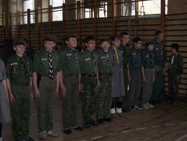 1992.03.27-29 - Rajd Arsenał - Baza w SP2 na Borze, zastęp młodszoharcerski z Czarnej Jedynki