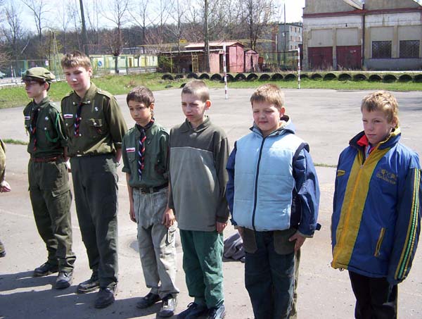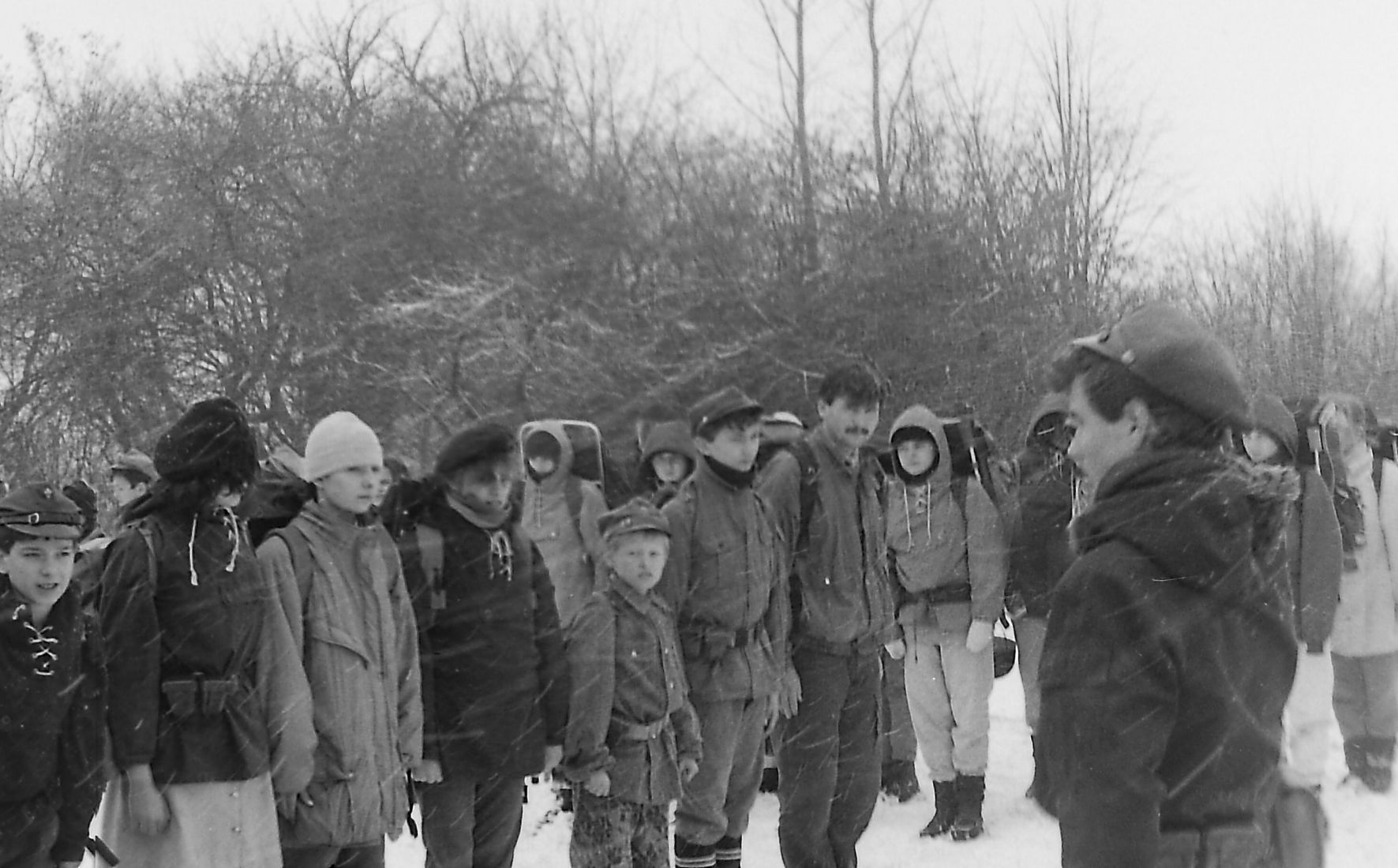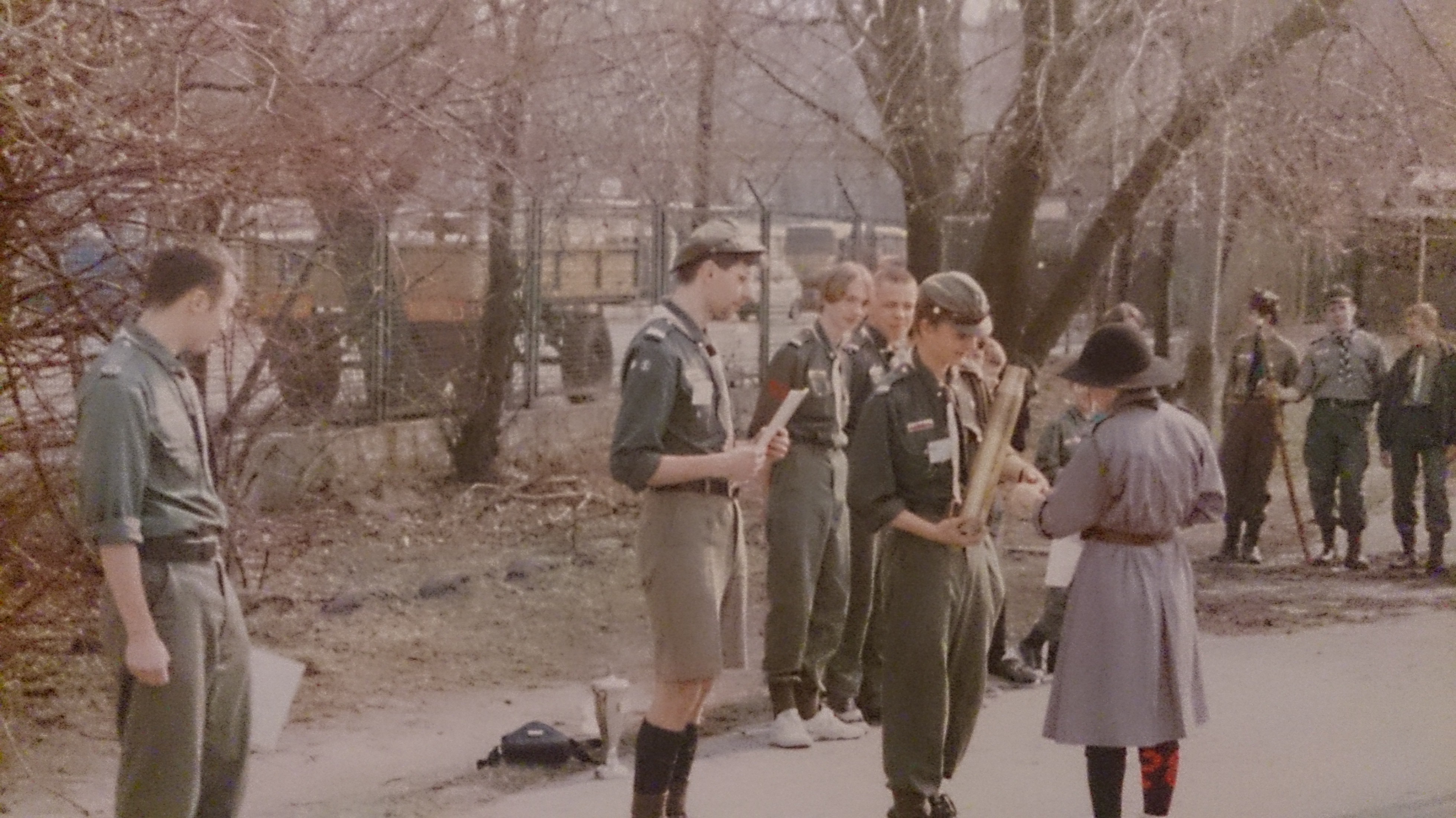 1992.03.27-29 - Rajd Arsenał, na sobotniej grze terenowej, zastęp młodszoharcerski z "Czarnej Jedynki"