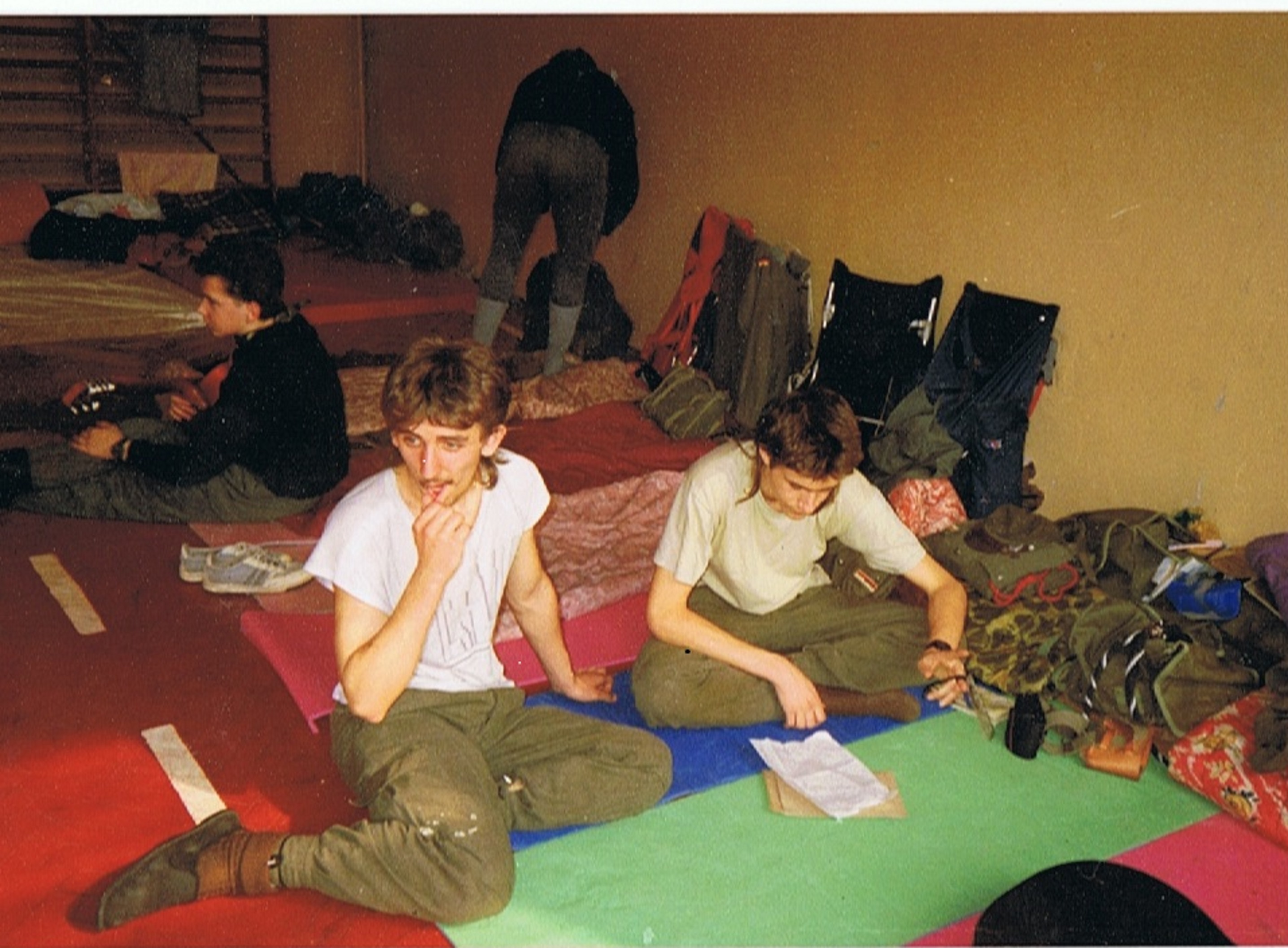 1992.03.27-29 - Rajd Arsenał - na noclegi w Szkole SP 2 na Borze (Baza) - Rafał Ruzik już w śpiworku -)