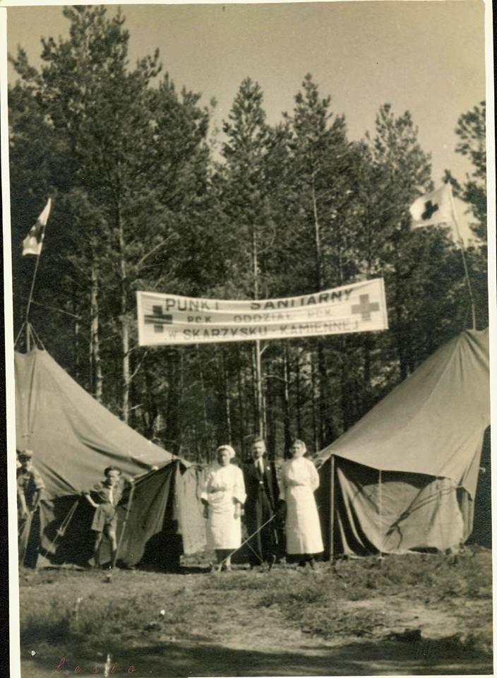 Drużyna sanitarna i harcerze podczas ekshumacji zwłok ofiar niemieckich zbrodniarzy na Borze